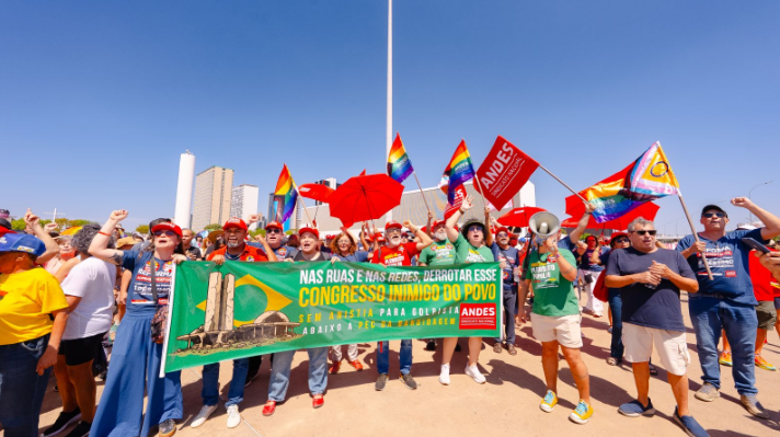 O ANDES-SN esteve presente nos atos em Brasília e em vários outros estados, reforçando a luta contra os ataques à democracia e aos direitos da classe trabalhadora. Na capital federal, milhares de pessoas se reuniram na Esplanada dos Ministérios, em um dos principais protestos do país.