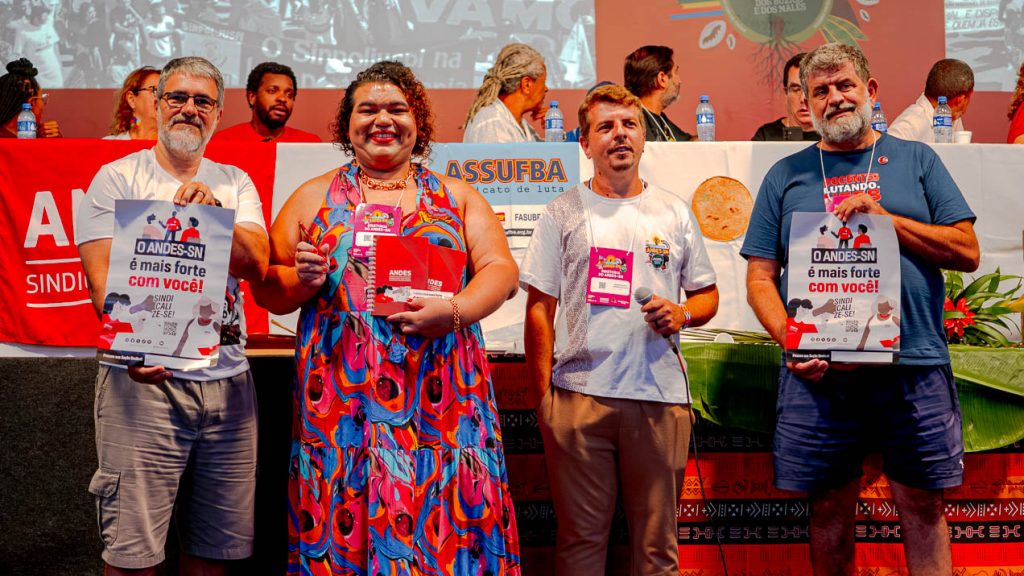 “O que foi pactuado no acordo de greve precisa ser respeitado. Aqui em Salvador, neste momento, estamos iniciando uma greve e já temos um calendário de lutas para reverter o quadro de dificuldades que enfrentamos”, afirmou. Para Bomfim, a realização do 44º Congresso do ANDES-SN na capital baiana reafirma a importância de fortalecer as lutas em defesa da democracia, da educação pública e contra todas as formas de opressão. Ele também destacou a memória das lutas históricas do povo baiano. “Aqui honramos a memória das revoltas dos Malês e dos Búzios. Só nos resta a luta. Lutar é o nosso caminho”, concluiu.