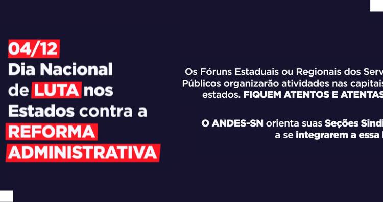Em Porto Alegre (RS), ocorrerá o “Ato Nacional Conjunto: Contra a Reforma Administrativa!”, às 12h, em frente à Faculdade de Educação (Faced) da Universidade Federal do Rio Grande do Sul (UFRGS). Participam da construção do ato diversas entidades, assim como as seções sindicais ANDES UFRGS, Sindoif e Aprofurg. Já em Curitiba (PR), o ato contra a reforma Administrativa será às 14h nas esquinas da Rua XV de Novembro com a Rua Dr. Faivre.