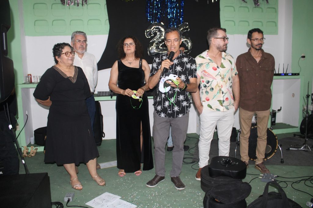 Música, interação entre os participantes, fantasias e sorteios de cestas natalinas e de brindes marcaram a festa de confraternização da ADUFCG de 2025, realizada na noite de sábado (13/12), na sede social. O evento também incluiu a apresentação de dois grupos musicais e um jantar para os participantes. Veja a galeria de fotos.