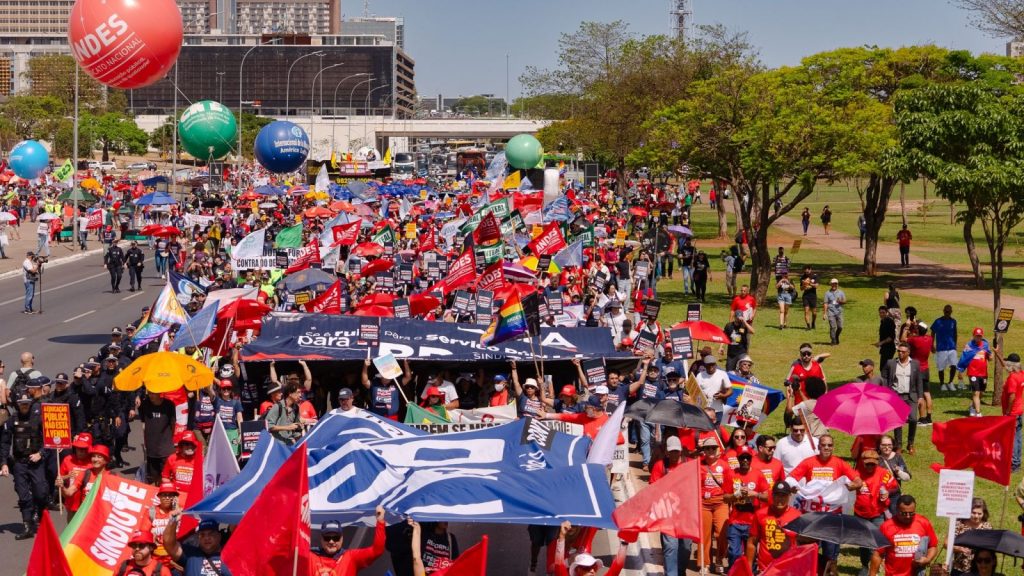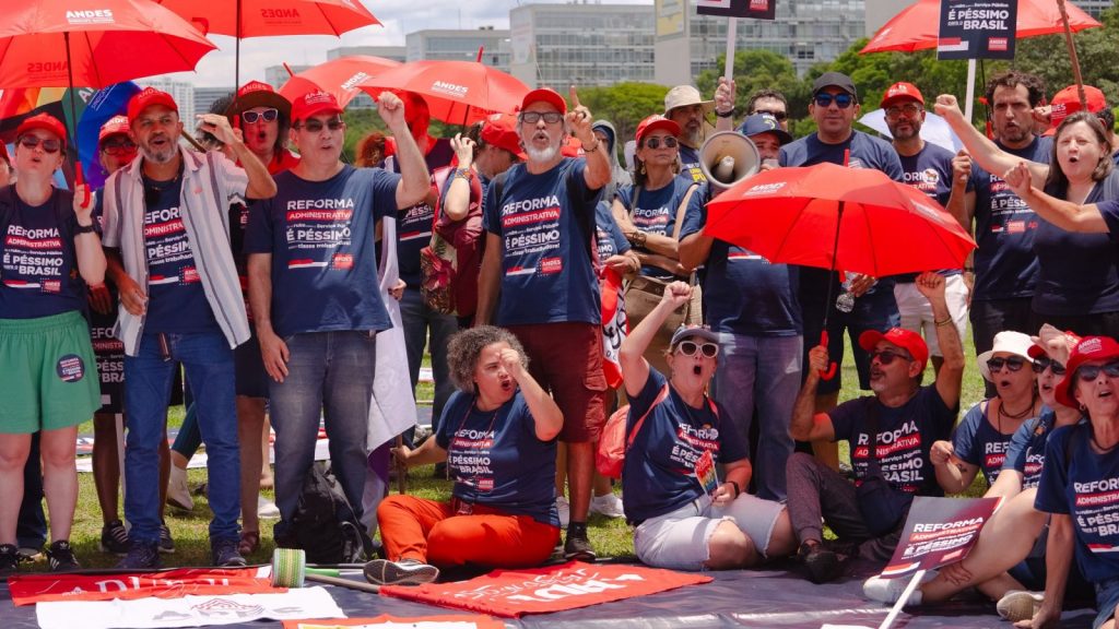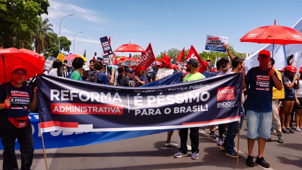 Mais de 20 mil servidoras e servidores públicos de todo o país saíram às ruas nesta quarta-feira (29), em Brasília (DF), para dizer não à Proposta de Emenda à Constituição (PEC) 38/2025, a chamada reforma Administrativa. A concentração teve início no Museu Nacional da República e seguiu até as proximidades do Congresso Nacional.