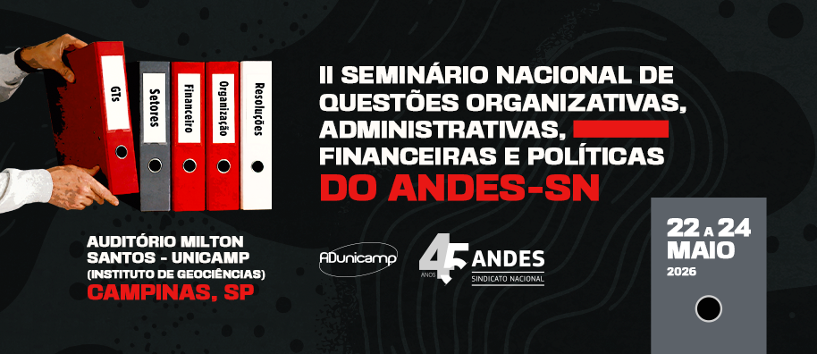 O ANDES-SN divulgou, nessa segunda-feira (27), a programação do II Seminário Nacional de Questões Organizativas, Administrativas, Financeiras e Políticas. O […]